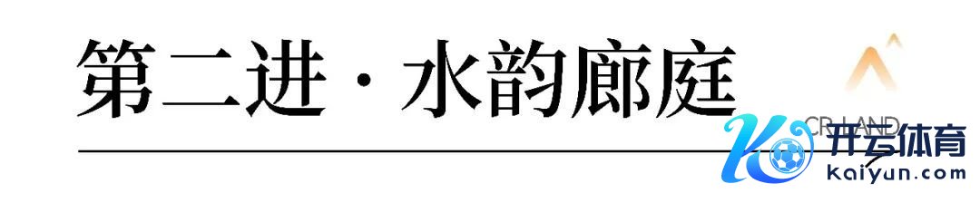 步入府门,映入眼帘的是水韵廊庭,以岭南园林中的“前庭后院”为灵感,呈现开门见池、环水而行的境界。潺潺活水环绕,给归家业主带来心灵的宁静。