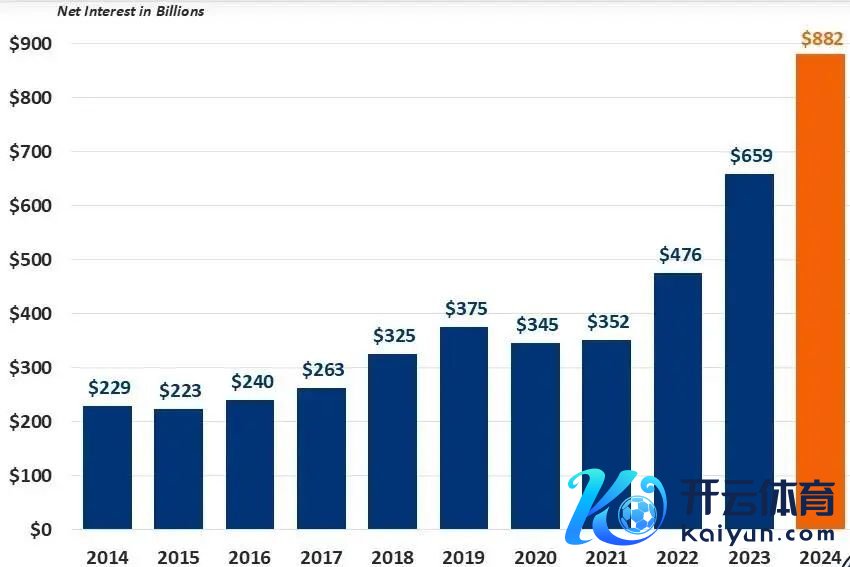 笔据好意思国财政部11月20日公布的数据,2024年好意思国联邦政府仅用以偿还好意思债利息的开销就达到了8820亿好意思元。相较2023年6590亿好意思元的利息开销,2024年好意思债利息开销增长率达33.8%。
