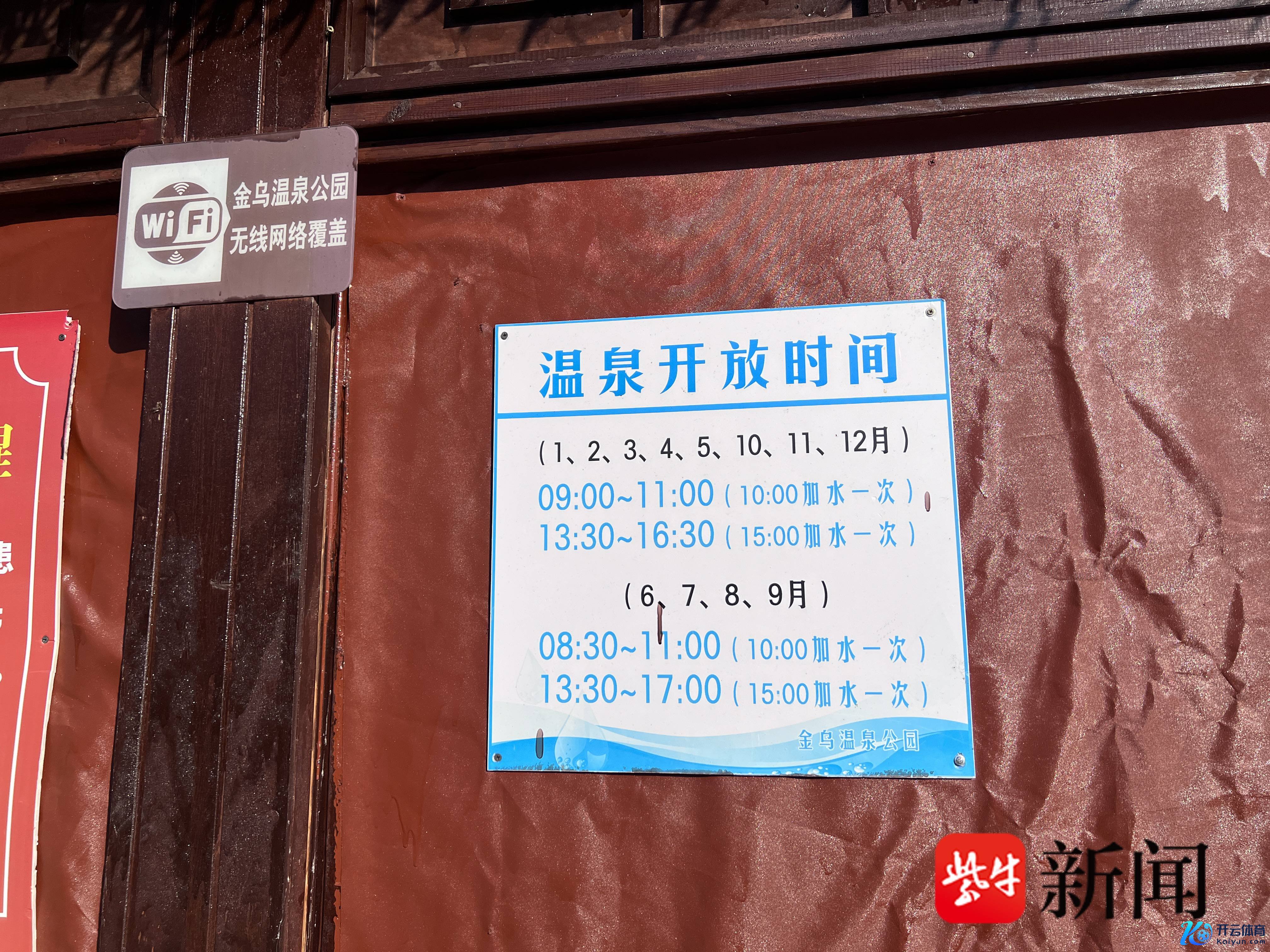 一旁的公示牌上,记者看到温泉全年灵通,冬季灵通时分是早上9-11点和下昼13:30-16:30,6-9月的灵通时分稍有蔓延,每天10点、下昼3点会再加一次水。现场一位责任主说念主员告诉记者,“每天晚上咱们都会清洁温泉池,保险卫生。”