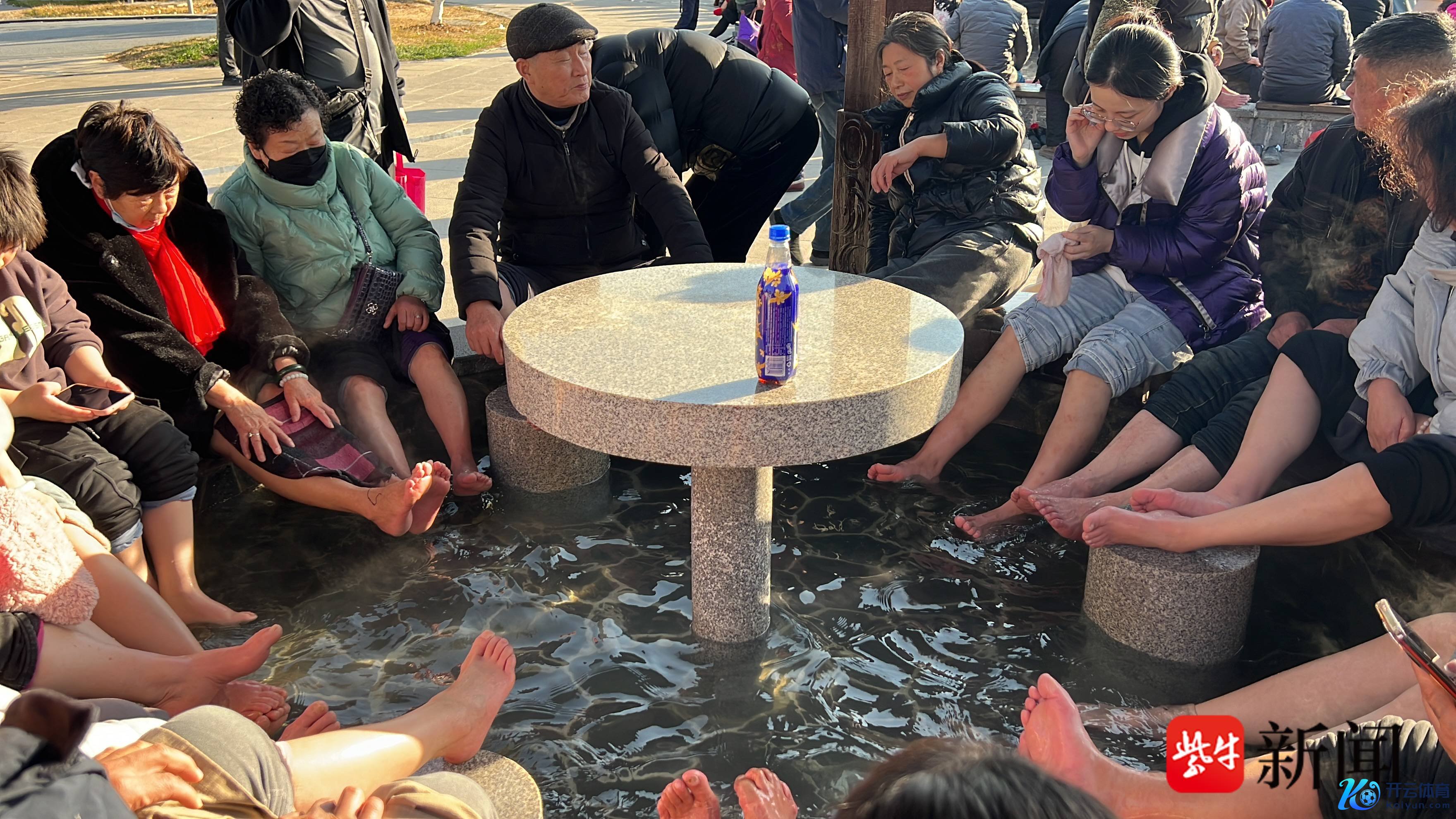 1月25日下昼3点,记者来到金乌温泉公园,温泉体验区内东说念主头攒动,吵杂超卓。泡脚的市民早早围坐到了一都,有五六十东说念主之多,有的市民和搭客在亭子里沿着围栏坐着泡脚,有的站在池中央三五成群说谈笑笑在泡脚,还有东说念主舒适看着书,别提多知足。不远方,还有几座小池塘供东说念主洗手泡手,晚到的还需要列队。