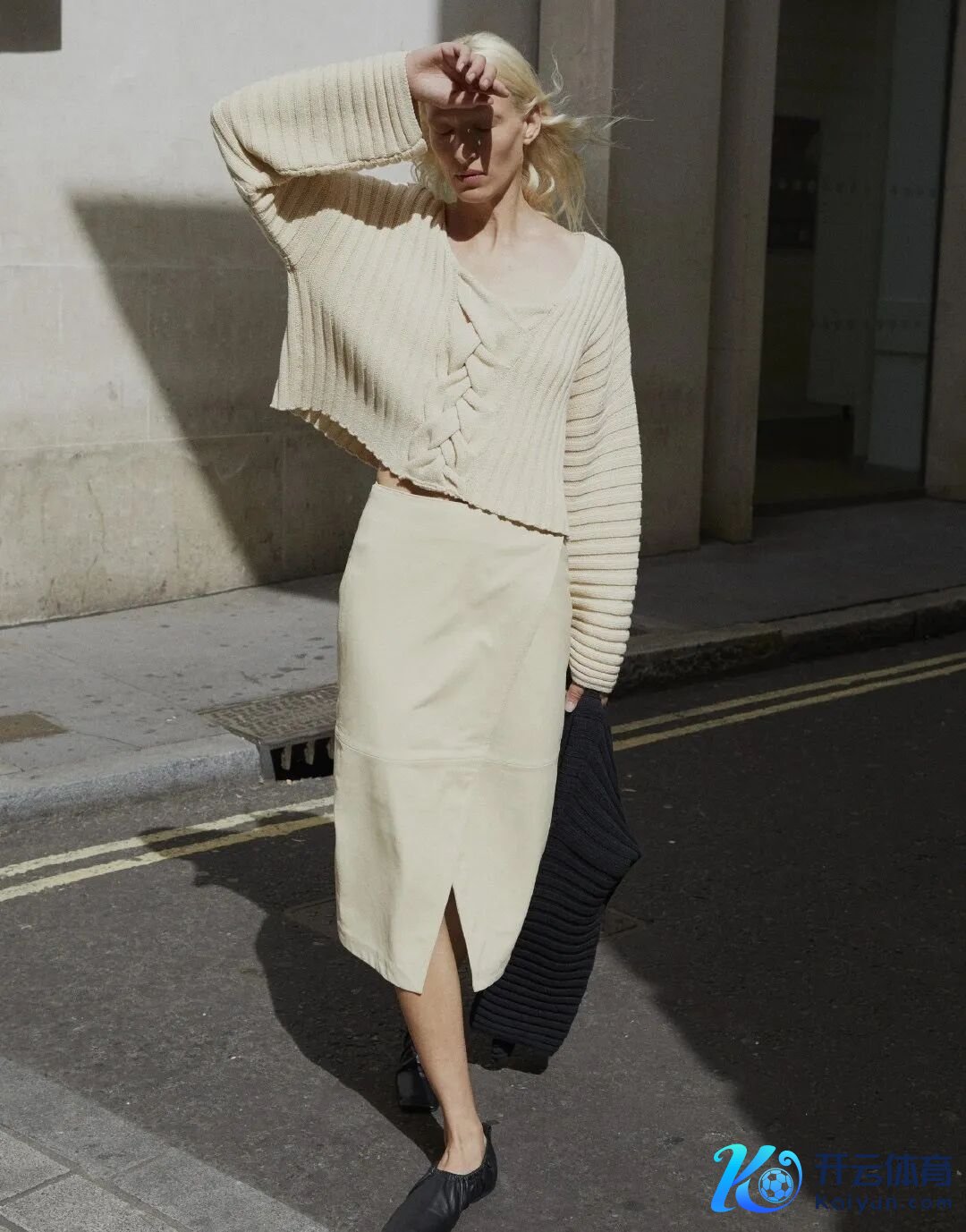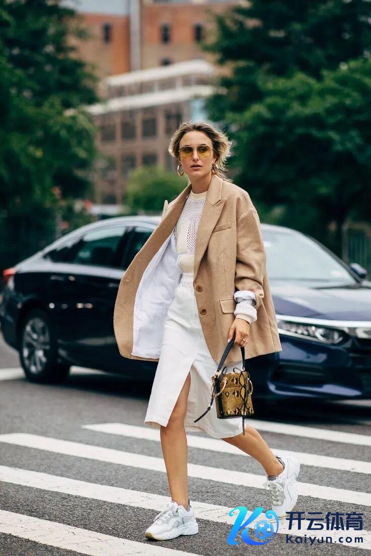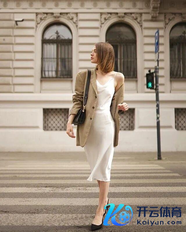 思要把开衫和裙子塑造得既放肆,又适合使命配景,那么也有逐个些些小前提,比如最稳健的纪律是聘任纯色系、或者纯色系内部经典感很强的辱骂驼灰色系。