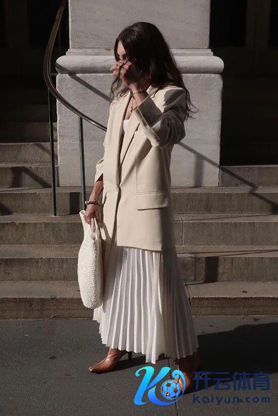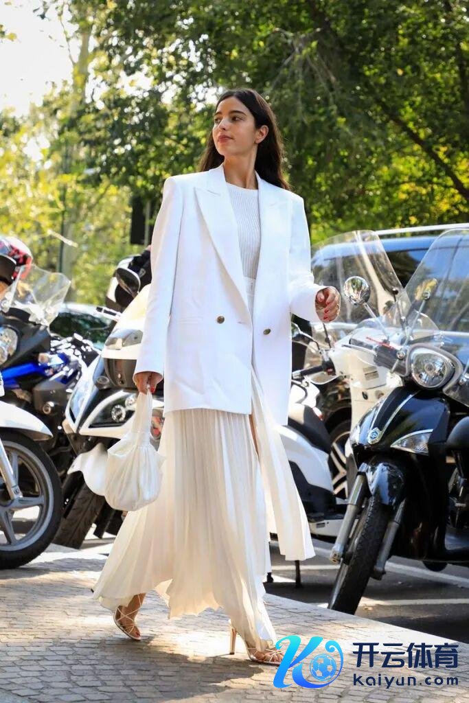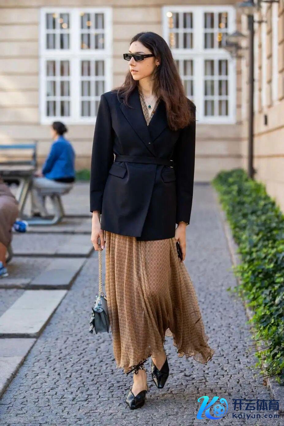 是以用裙子补充西装,有种很是不经意间的放肆性,这么的放肆既不腻东谈主,又有种难能珍摄的稀缺感,才会显得很是有魔力——双重魔力。