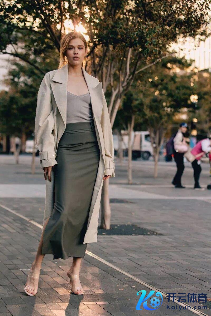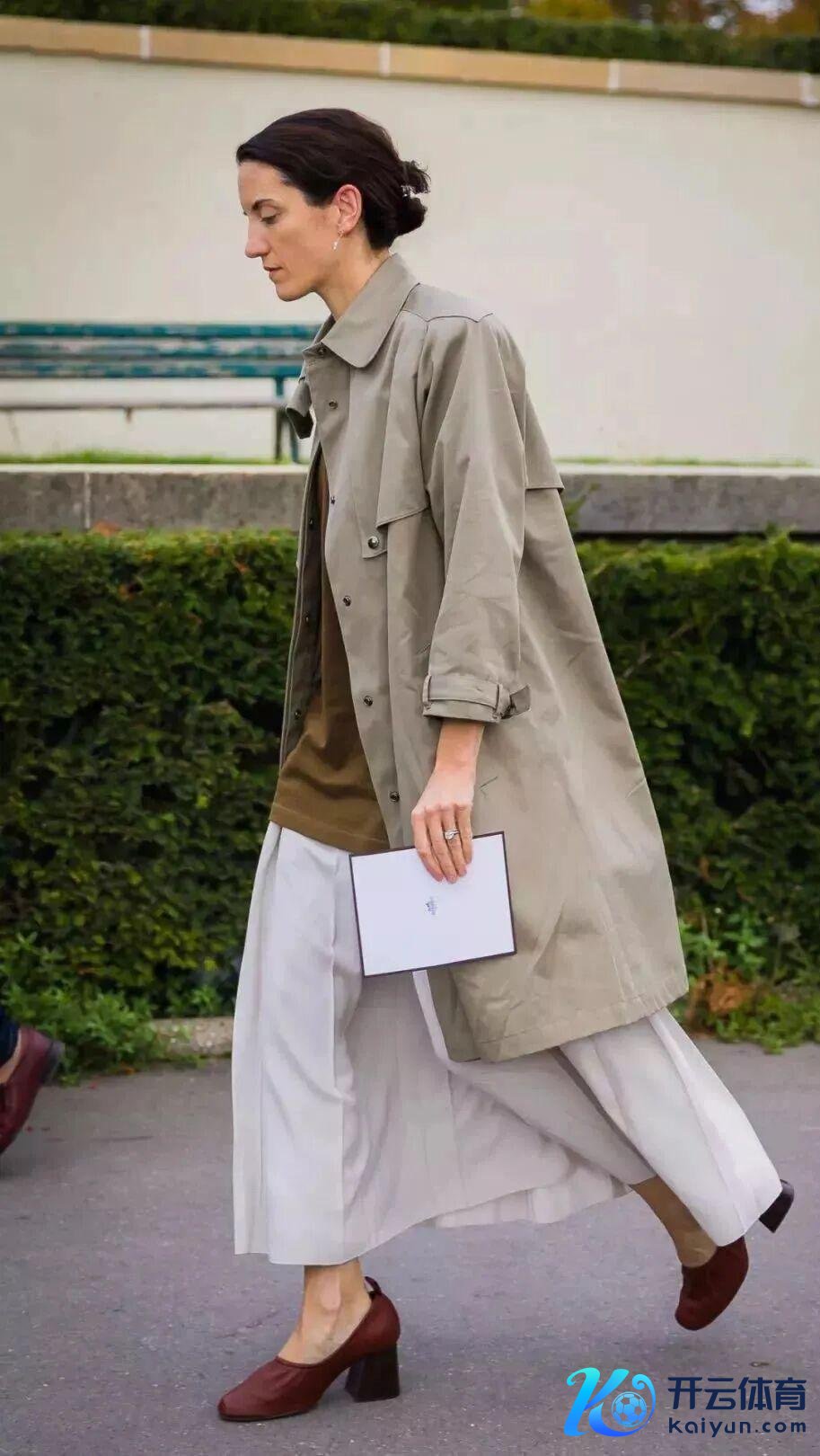 长款风衣的掩蔽性好,加上裙子自己显瘦超脱的氛围加抓,这一组其实是最佳塑造的放肆穿搭。