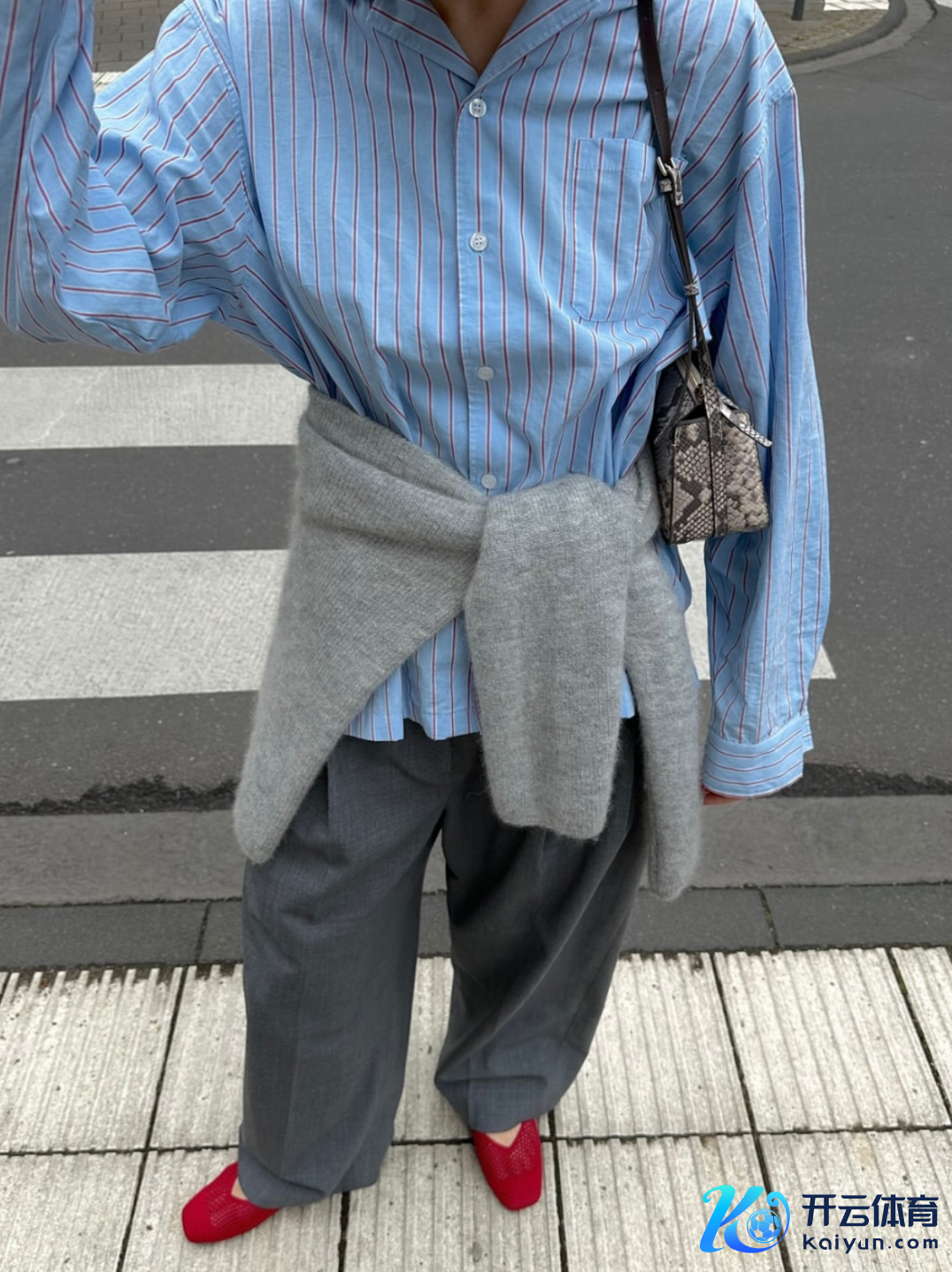 另外,也不错尝试呼应色,比如上半身出现了少许红,下半身不错轻轻恢复同色系的小物件,全体会更有节律感。