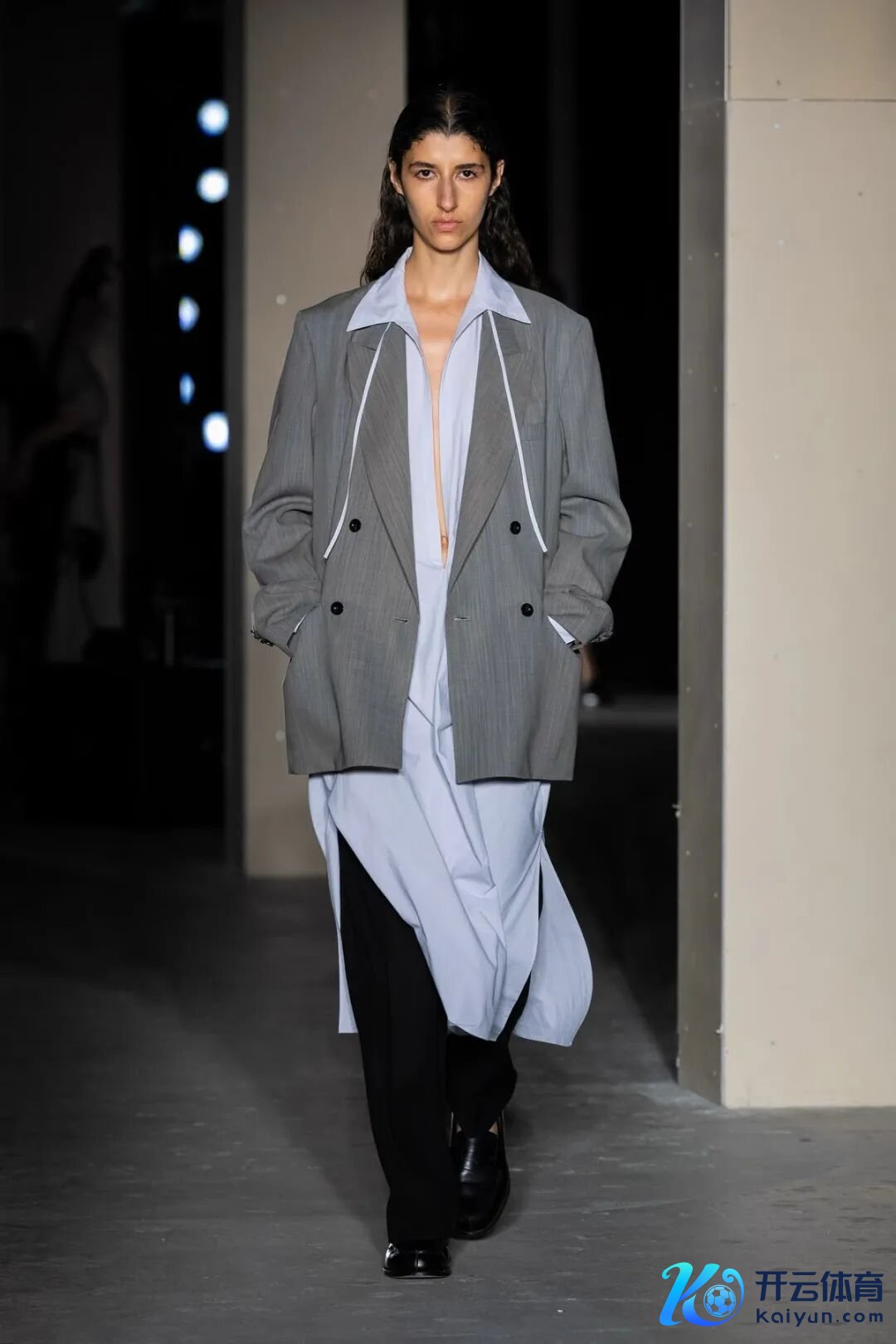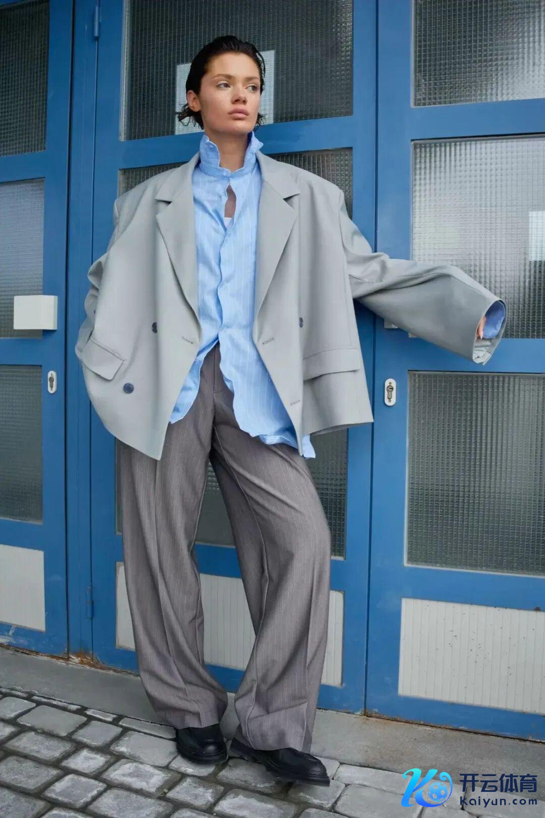 平方里不错通过材质去编造,比如至意的柔嫩、棉布的亲肤,合作宽松舒展的廓形,蓝灰当然就会从冷静走向轻快。