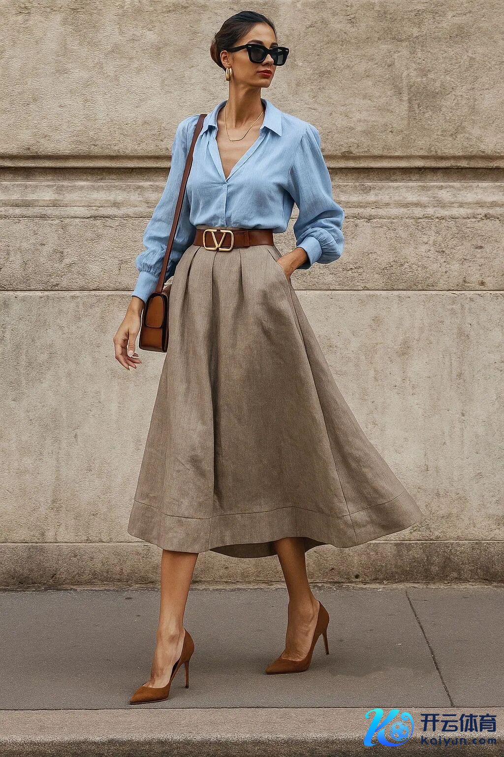 这种组合的妙处,是在保留大女东谈主千里稳气质的同期,增添了几分活力。
