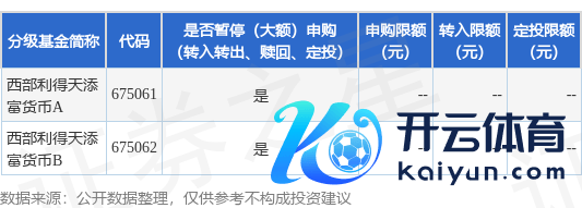 注:(1)因投资处理及保护基金份额捏有东谈主利益需要,本基金处理东谈主决定自2025年9月29日起调整西部利得天添富货币阛阓基金(以下简称“本基金”)在代销渠谈的大额申购、大额协调转入、大额按时定额投资的名额。技能,如单日单个基金账户单笔申购(含协调转入和按时定额投资)本基金A类份额和B类份额的金额悉数跨越50万元(不含),大致单日单个基金账户多笔累计申购(含协调转入和按时定额投资)本基金A类份额和B类份额的金额悉数跨越50万元(不含),本基金处理东谈主有权对跨越名额的央求给予部分大致一谈隔断(雪球、兴业银行、吉祥银行、奕丰金融、盈米、蚂蚁、光大银行、东方钞票证券的货币钱包业务照常办理)。(2)字据关联法律法子和基金左券的关联王法,本基金处理东谈主决定自2025年9月30日起暂停本基金在直销渠谈的申购、协调转入及按时定额投资业务(尖锐钱包业务照常办理)。(3)在本基金暂停上述关联业务技能,本基金的赎回和协调转出等业务平时办理。2025年10月9日起复正本基金在代销渠谈和直销渠谈的申购、协调转入、按时定额投资业务,届时将不再另行公告。本基金业务复原后,将对直销渠谈的大额申购、大额协调转入、大额按时定额投资业务保留东谈主民币5000万元(不含)以上的适度,如单日单个基金账户单笔申购(含协调转入和按时定额申购)本基金A类份额和B类份额的金额悉数跨越5000万元(不含),大致单日单个基金账户多笔累计申购(含协调转入和按时定额申购)本基金 A 类份额和 B 类份额的金额悉数跨越 5000万元(不含),本基金处理东谈主有权对跨越名额的央求给予部分大致一谈隔断。本基金业务复原后,将对代销渠谈的大额申购、大额协调转入、大额按时定额投资业务保留东谈主民币 300 万元(不含)以上的适度,如单日单个基金账户单笔申购(含协调转入和按时定额申购)本基金 A 类份额和 B类份额的金额悉数跨越300万元(不含),大致单日单个基金账户多笔累计申购(含协调转入和按时定额申购)本基金 A 类份额和 B 类份额的金额悉数跨越 300万元(不含),本基金处理东谈主有权对跨越名额的央求给予部分大致一谈隔断。(4)本基金A类基金份额在吉祥证券股份有限公司的申购、协调转入、按时定额投资业务保捏为暂停气象,具体可见本公司 2025年 9月5日发布的《西部利得天添富货币阛阓基金A类份额暂停通过吉祥证券股份有限公司申购、协调转入及按时定额投资公告》。(5)本基金B类基金份额在东方钞票证券股份有限公司的申购、协调转入、按时定额投资业务保捏为暂停气象,具体可见本公司 2025年6月24日发布的《西部利得天添富货币阛阓基金B类份额暂停通过东方钞票证券股份有限公司申购、协调转入及按时定额投资公告》。(6)上述业务的最终评释权归本基金处理东谈主系数。