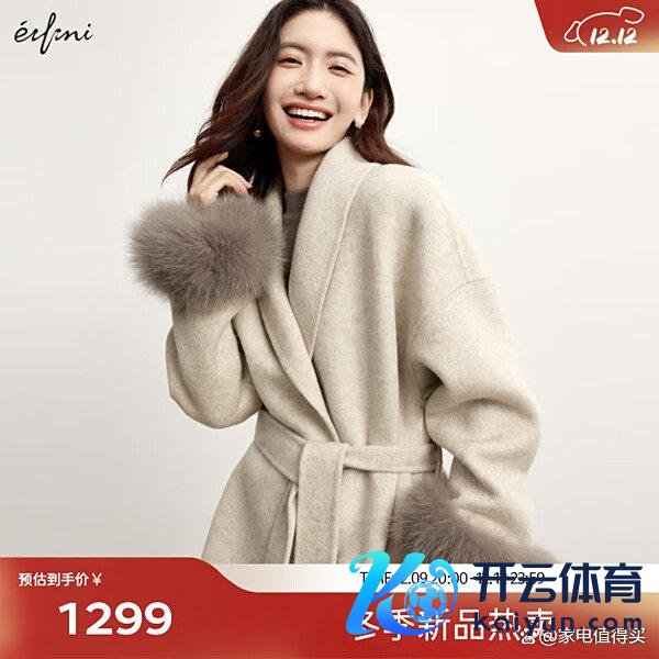 一、伊芙丽伊芙丽全羊毛袖口可脱卸荫庇腰带收腰短款双面呢大衣